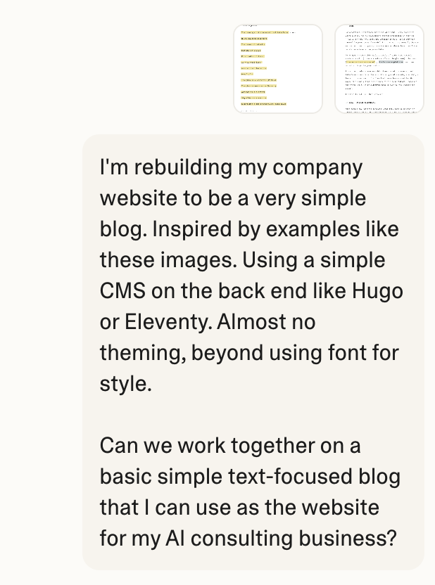 As I write this, I’m asking Claude Code to look at the whole blog and find ways to improve it technically. It says we have achieved some amazing results. I suspect it will have destroyed everything, and especially that it has forgotten we are using Hugo, which has certain expectations and requirements.