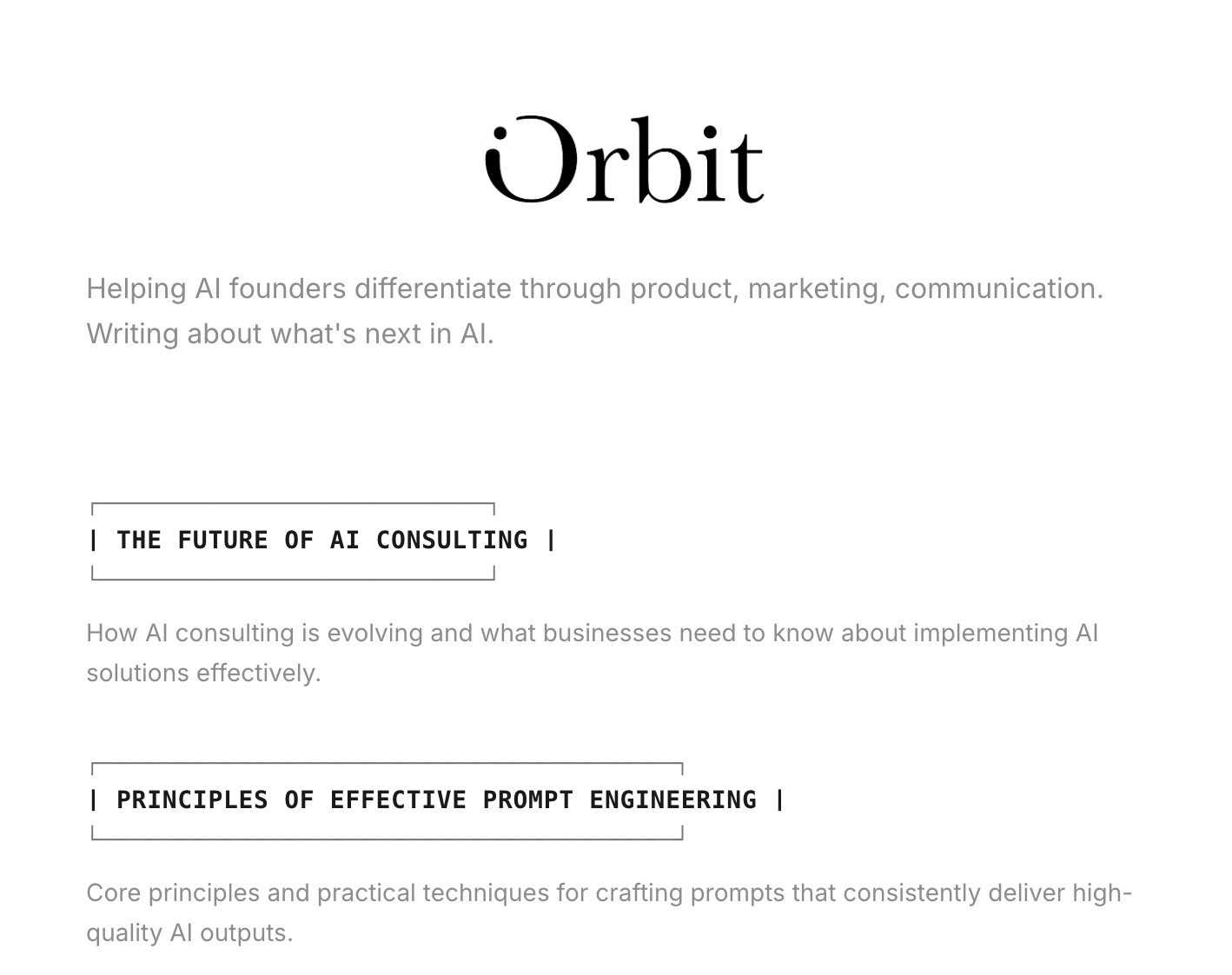 I moved onto the Single page design, asking it to generate ASCII style headings. Then Further posts at the bottom.